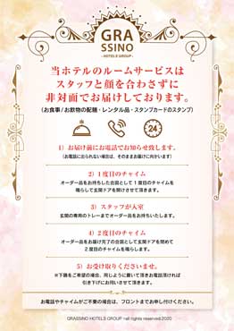 当ホテルのルームサービスは非対面でお届けします。